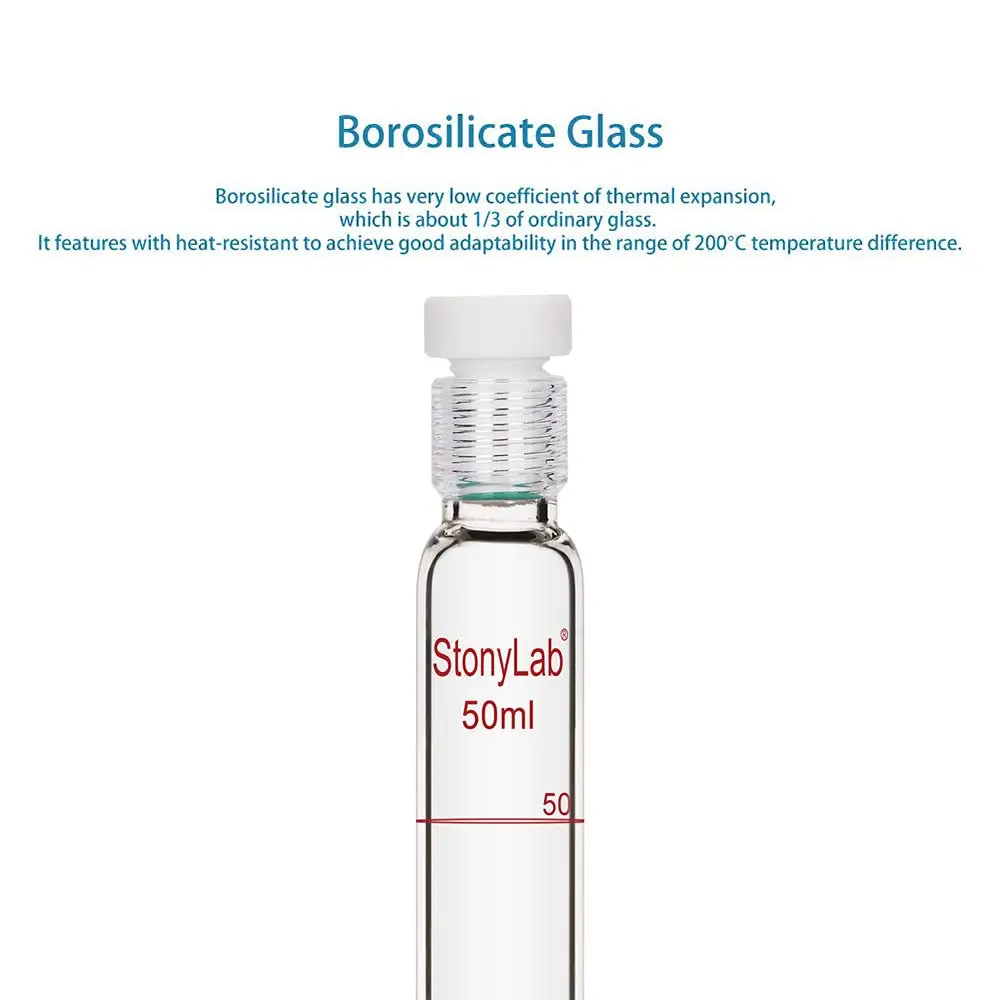 - Capacity Options: available in 10 ml, 25 ml, 50 ml, and 100 ml volumes; graduated markings for precise measurement