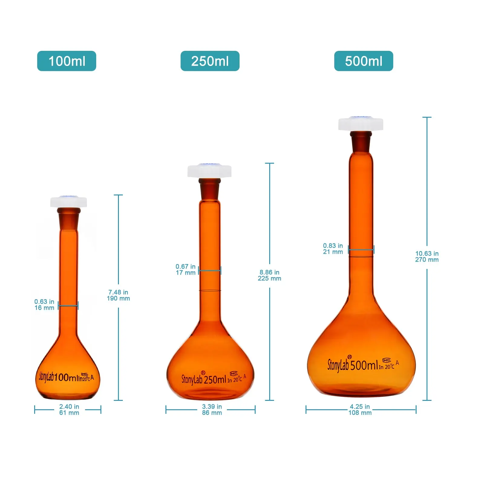 - Accuracy & Calibration: class A volumetric flask with a single etched calibration mark for analytical-grade volumetric measurements tolerance ±0.02 ml for precise solution preparation